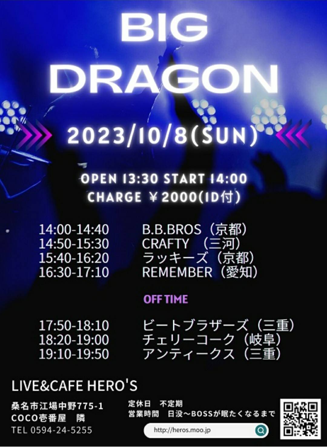 2023年10月8日(日)三重県桑名市ヒーローズにてイベント「BIG DRAGON」遠征ライブしました!
